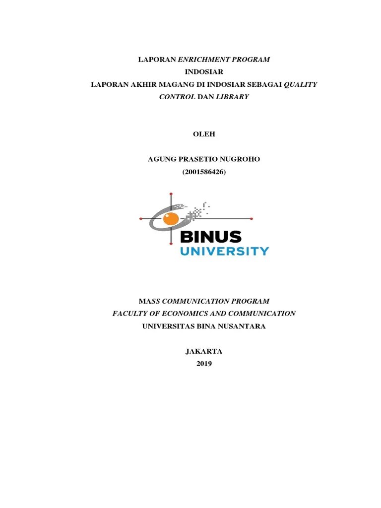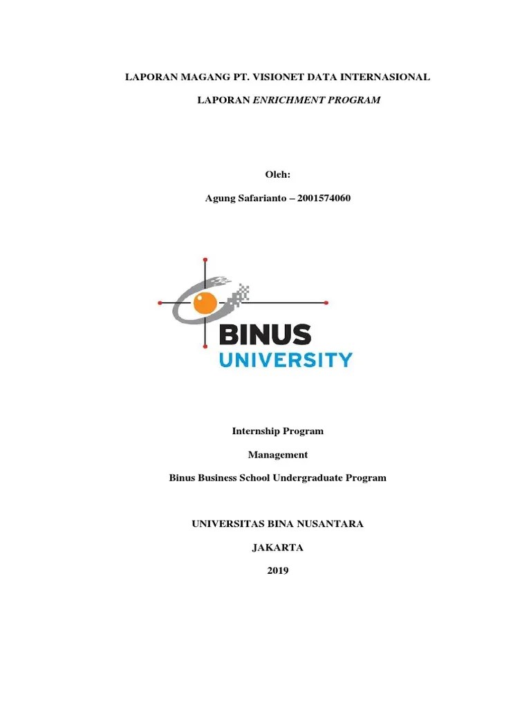 Binus university merupakan perguruan tinggi swasta yang terletak di. Berikut adalah contoh laporan magang mahasiswa yang bisa dipelajari. Laporan magang tugas akhir ini menggunakan metode analisis dan. Susun laporan prakerin dengan format yang sudah disosialisasikan oleh hubin. Oleh ibu setiani putri hendratno, s.e., m.ak.sabtu, 8 agustus 2020.